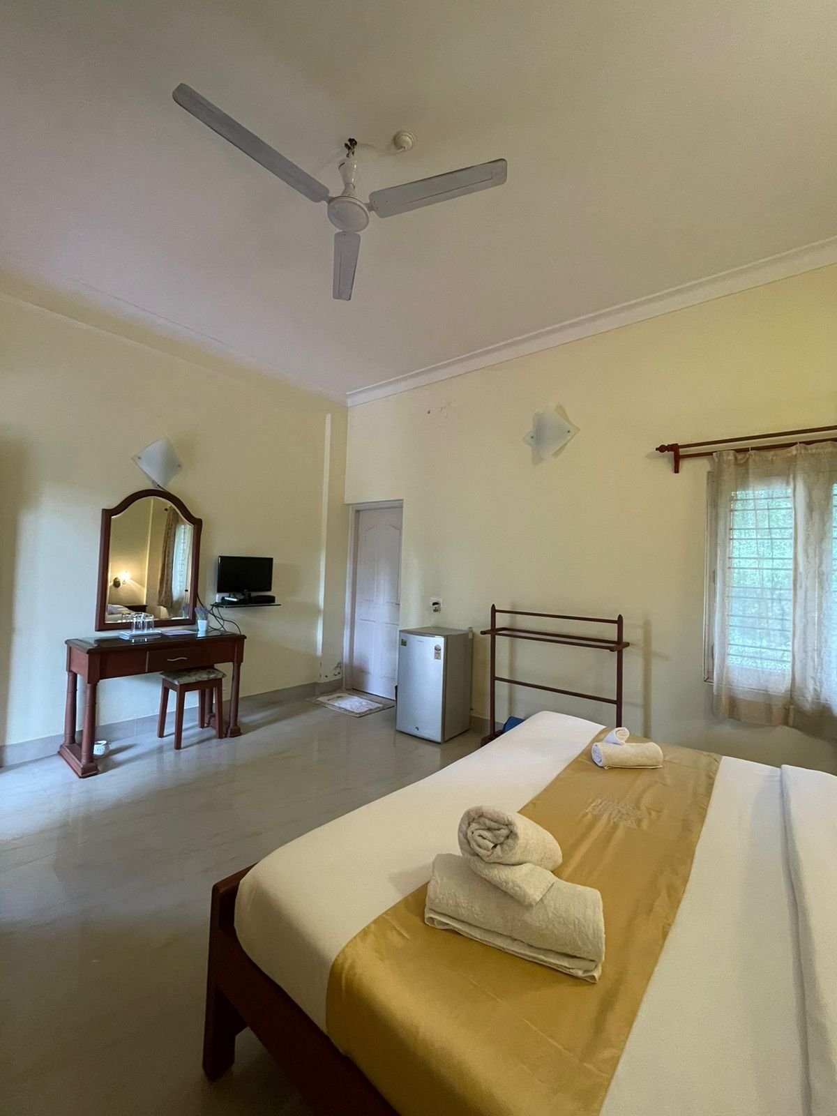 A spacious 400 sq. ft. room ideal for families, offering comfort amidst the estate. Perfect for parents with kids or small groups seeking a homely stay in nature.